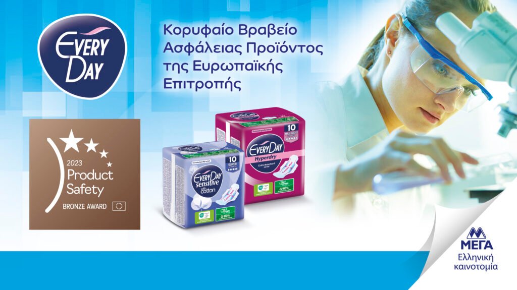 Σε μια σημαντική τελετή στις Βρυξέλλες, τιμήθηκε η εταιρεία ΜΕΓΑ ΠΡΟΪΟΝΤΑ ΑΤΟΜΙΚΗΣ ΥΓΙΕΙΝΗΣ Α.Ε. παραλαμβάνοντας το κορυφαίο Ευρωπαϊκό Βραβείο Προϊοντικής Ασφάλειας για τα προϊόντα EveryDay από την Ευρωπαϊκή Επιτροπή.